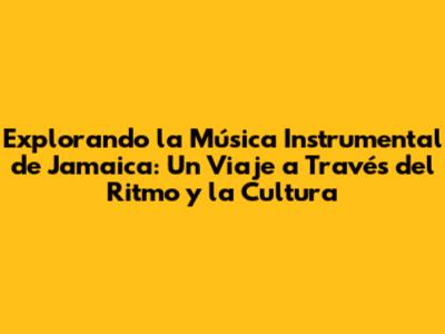 Explorando La Música Instrumental De Jamaica