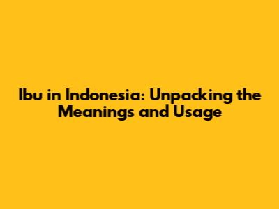 Ibu In Indonesia: Meanings And Uses Explained