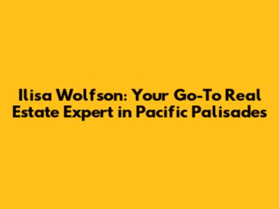What’s up, guys! Today, we're diving deep into the sunny, upscale world of Pacific Palisades real estate, and who better to guide us than the incredible Ilisa Wolfson? If you're looking to buy, sell, or just curious about this absolutely stunning coastal community, then you've come to the right place. Ilisa Wolfson isn't just another real estate agent; she's a powerhouse in the Pacific Palisades market, known for her unparalleled local knowledge, dedication to her clients, and impressive track record. She understands that buying or selling a home is one of the biggest decisions you'll make, and she approaches it with the professionalism, expertise, and genuine care that you deserve. So, grab a coffee, settle in, and let's explore why Ilisa Wolfson is the name you need to know when it comes to Pacific Palisades properties.