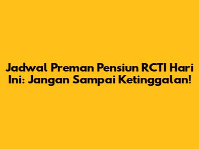 Hey guys, pada nyari jadwal Preman Pensiun di RCTI hari ini? Tenang aja, gue bakal kasih tau semua infonya biar kalian gak ketinggalan satu episode pun! Buat para penggemar setia Kang Mus dan kawan-kawan, pastinya udah gak sabar kan buat ngikutin terus kelanjutan cerita mereka? Yuk, simak terus artikel ini!