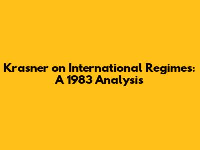 Krasner On International Regimes: A 1983 Analysis
