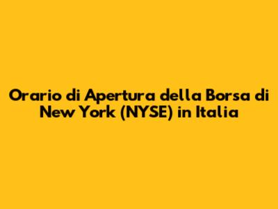 Orario Di Apertura Della Borsa Di New York (NYSE) In Italia