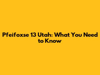 Pfeifoxse 13 Utah: What You Need To Know