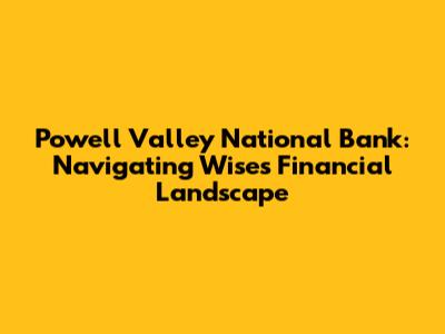 Hey there, financial explorers! Let's dive deep into the world of Powell Valley National Bank (PVNB), specifically focusing on its presence in Wise, Virginia. This article is your ultimate guide, covering everything from its history and services to its community involvement and what makes it a solid choice for your banking needs. Whether you're a long-time resident of Wise, a newcomer, or just curious about PVNB, you're in the right place. We'll break down the essentials in a way that's easy to understand, so grab a coffee, and let's get started!