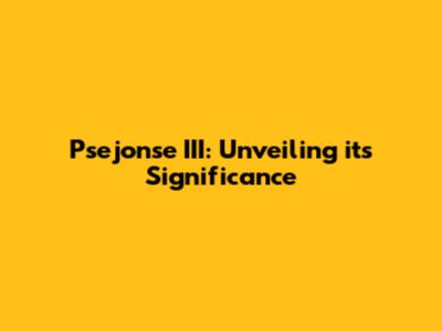 Psejonse III: A Deep Dive Into Its Significance