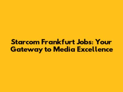 Starcom Frankfurt Jobs: Your Gateway To Media Excellence