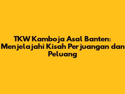 TKW Kamboja asal Banten adalah pahlawan-pahlawan yang berjuang keras untuk meraih kehidupan yang lebih baik. Mereka menghadapi berbagai tantangan, namun tetap memiliki harapan dan impian yang besar. Untuk mendukung mereka, diperlukan peran aktif dari pemerintah dan masyarakat. Dengan memberikan perlindungan, dukungan, dan pemberdayaan, kita dapat membantu mereka meraih masa depan yang lebih cerah.