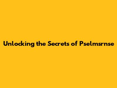 Unlocking The Secrets Of Pselmsrnse
