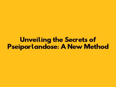 Unveiling The Secrets Of Pseiporlandose: A New Method