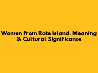 Women From Rote Island: Meaning & Cultural Significance